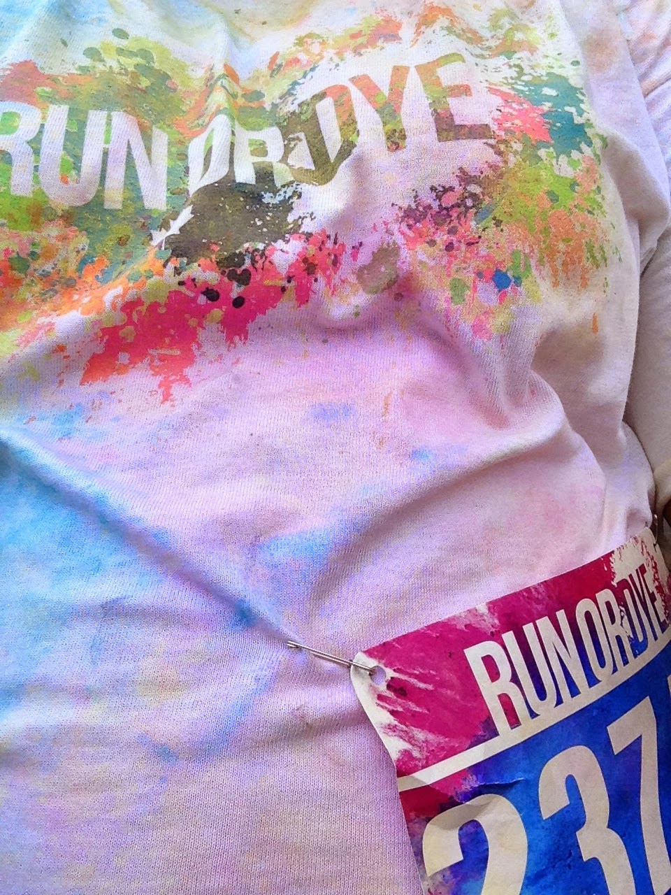 As you may recall, I had mentioned a while back (about February time) that I was going to be doing the Run or Dye 5k in June. Well, I did it! And it was HARD. To start, I was fully expecting it to take place on roads, so I thought nothing of wearing my Toms so that my new sneakers wouldn't get dirty. However, it was actually on grass... and it had just rained. But I slid onward. Not only were we on grass, but also a SKI HILL. We walked downhill, uphill, around hill, and even fell on my hiney a time or two. At every kilometre, we were covered in powdered dye, and that was so much fun! We ended up missing one colour as I was too winded to make it up and down one hill, so we just cut through the trail markers and kept going! Anyway, I am very proud to say that I finished the Run or Dye 5K, and here are a few pictures to prove it! (All of these were taken before or after as I didn't want to get my phone dirty!)